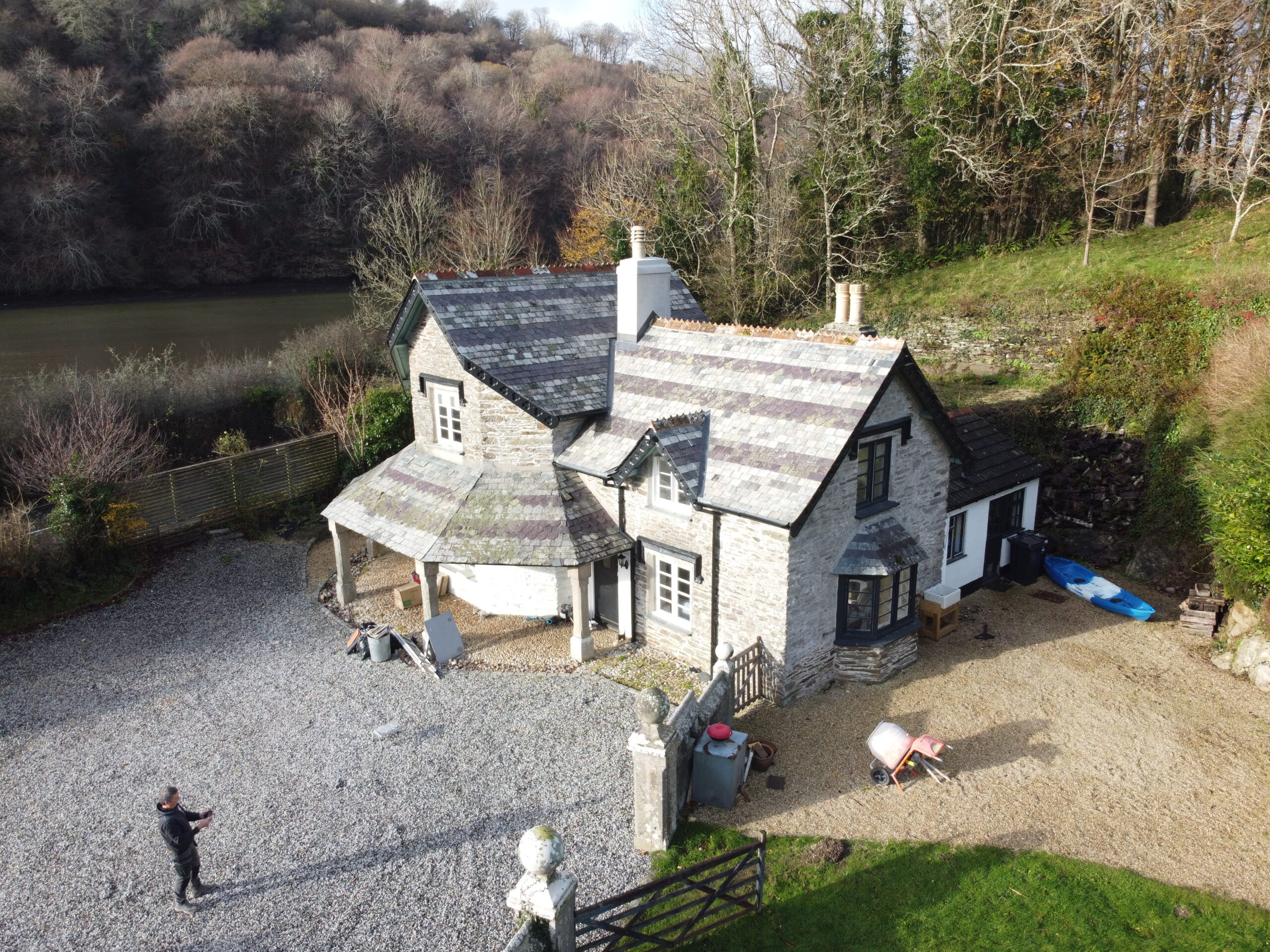 Chapel lodge at Tideford Delabole slate on the front and Spanish slate on the back